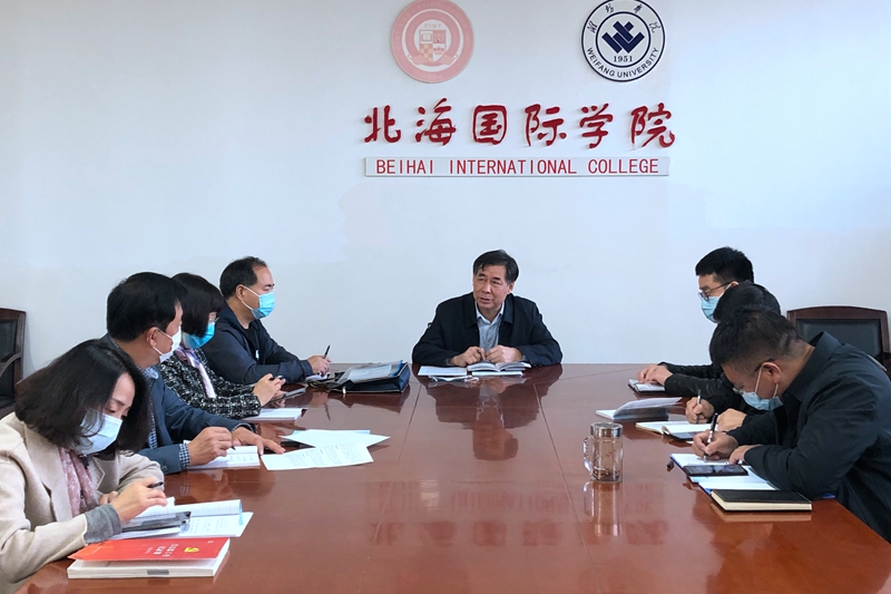 本网讯 10月27日下午,北海国际学院召开教职工大会,传达学习贯彻党的二十大精神,党总支书记、院长胡胜军主持会议并讲话,全体教职工参加会议。