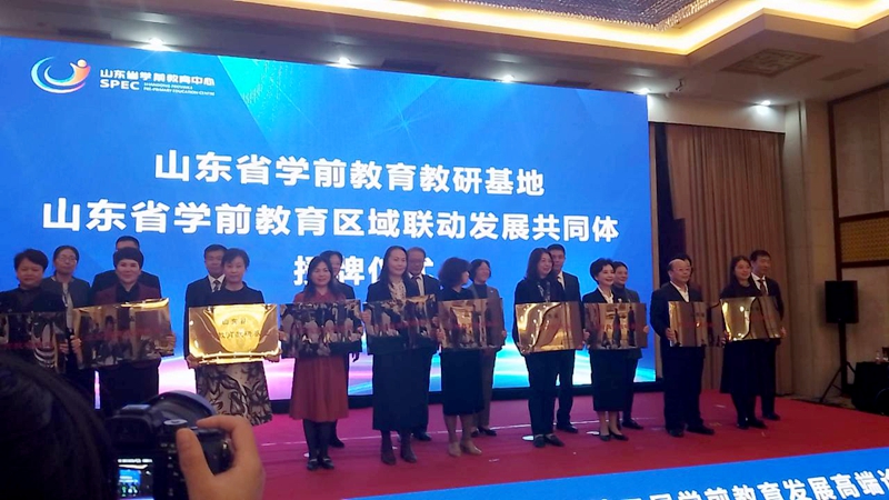 本网讯 10月26至28日,山东省学前教育学会成立大会暨第二届学前教育发展高端论坛在济南举行。会上,公布了山东省学前教育教研基地33个,其中高等学校教研基地7个,我校名列其中。山东省教育厅一级巡视员刘欣堂、山东省学前教育学会会长黄琦、山东女子学院院长李光红等领导为教研基地授牌。我校教师教育学院院长魏晨明教授代表学校领牌。