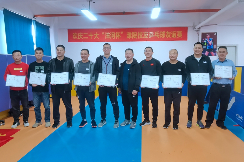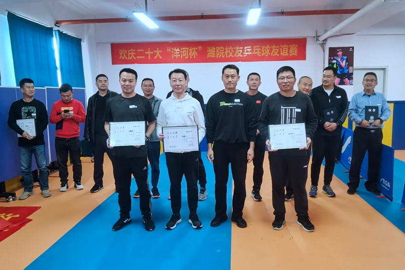本次比赛分为两个阶段,第一阶段采用分组循环赛制,第二阶段实行淘汰赛制,比赛采用3局2胜11分制。经过一天的激烈角逐,最终2010届校友王秀龙获得冠军、2009届校友杨建军和1997届校友房振文分获亚军、季军。洋河酒业潍坊总代理刘晓伟、大成乒乓俱乐部陈正茂为本次比赛提供了全程赞助。