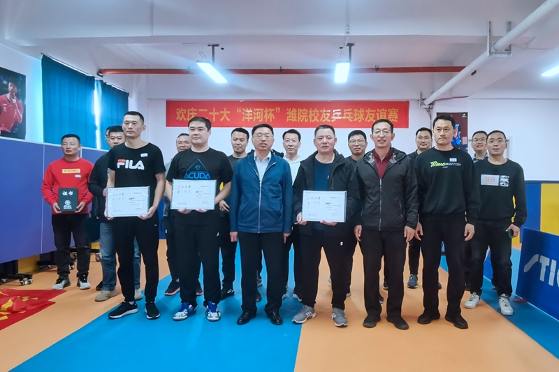 本网讯 为庆祝党的二十大胜利召开,加强学校与校友单位的进一步交流,筹备企业家校友会成立等工作,10月29日,我校首届校友乒乓球友谊赛在大成乒乓俱乐部举行。本次参赛校友自1997-2013届跨度16届,来自不同学院的近30名企业界校友参加了比赛。合作发展处处长张华出席开幕式并讲话,副处长(校友办)魏星为获奖校友颁发证书及赞助奖品。