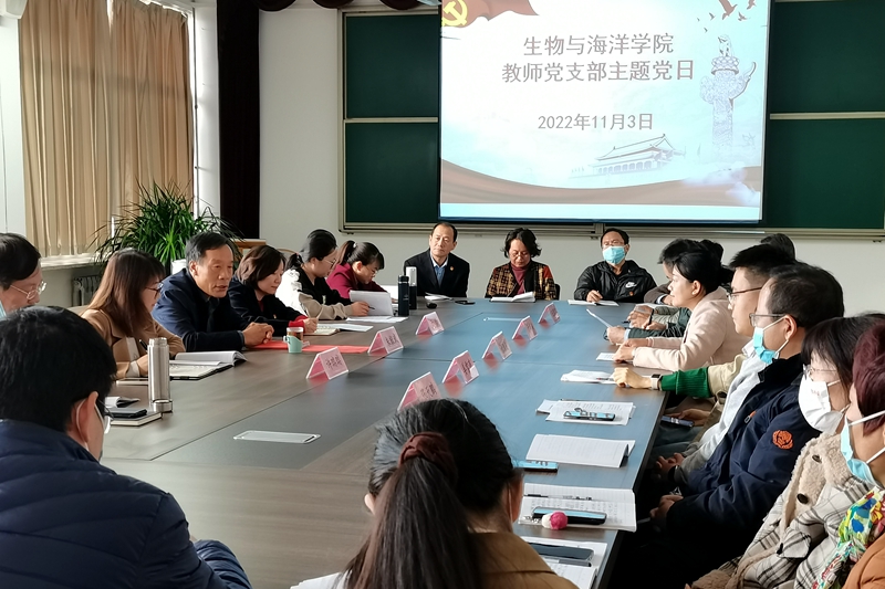 本网讯 11月3日,学校党委委员、副校长朱猷武以普通党员身份参加所在党支部——生物与海洋学院教师党支部“学习宣传贯彻党的二十大精神,以应用型科研服务区域经济发展”主题党日活动并作交流发言。