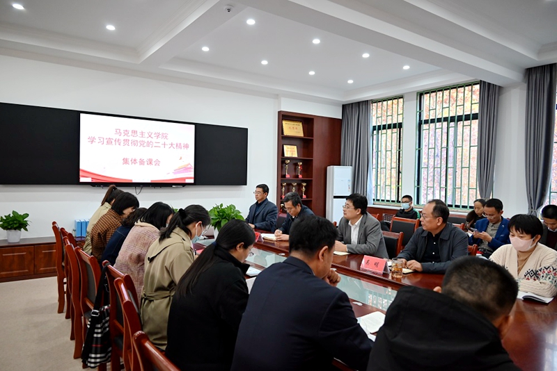本网讯 11月11日,马克思主义学院召开党的二十大精神贯彻融入思政课集体备课会,学院党总支书记吴明、院长刘德才、各教研室主任、副主任和教师代表参加。教务处处长侯金奎特邀出席。会议由刘德才主持。