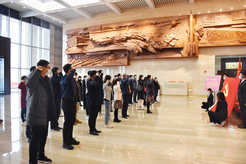 在展馆序厅,大家面对中国共产党党旗,重温入党誓词,铭记初心使命。随后在讲解员的带领下,大家依序参观了“内忧外患,勇做民族独立主心骨”“百废待兴,敢做艰苦创业铺路石”“春潮涌动,敢做勇闯新路领头雁”“长风破浪,争做伟大复兴追梦人”四个展厅,详细了解反映驻地党史及重大发展纪实的珍贵历史图片和影像资料。参观过程中,每位党员都认真聆听讲解介绍,不时停留驻足、用心观看,深切体悟革命先驱的弥坚信仰和铁血丹心,充分感受一代代共产党员的责任和担当,现场学习气氛浓厚。