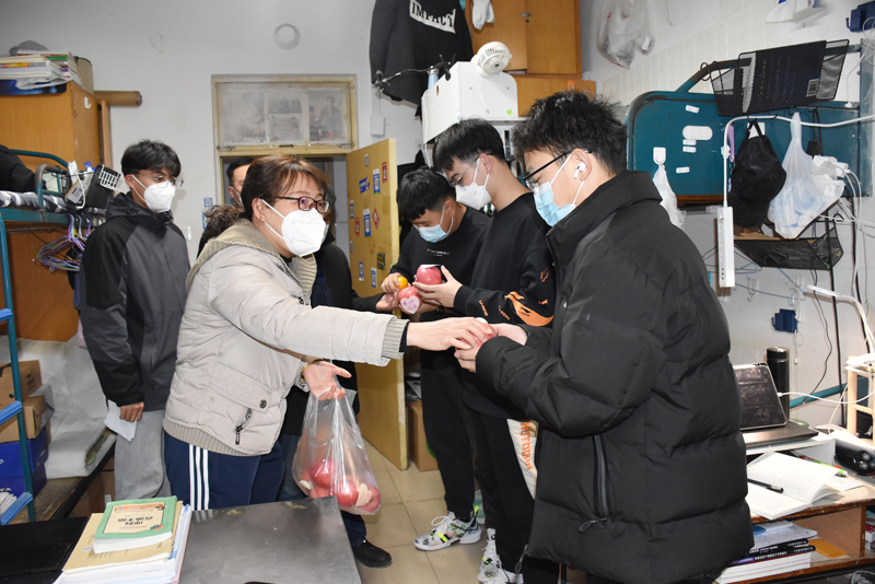 该院党总支书记张晓静仔细了解同学们学习备考和日常生活情况,关心询问现阶段遇到的突出问题,鼓励大家在这关键时刻要稳住心态,不急不躁,全线压上,坚定必胜信念。同时,她要求同学们务必做好个人防护,遵守学校规定,安全顺利地迈向考场。她表示,学院将尽全力为同学们提供服务保障,老师们一直和大家在一起。