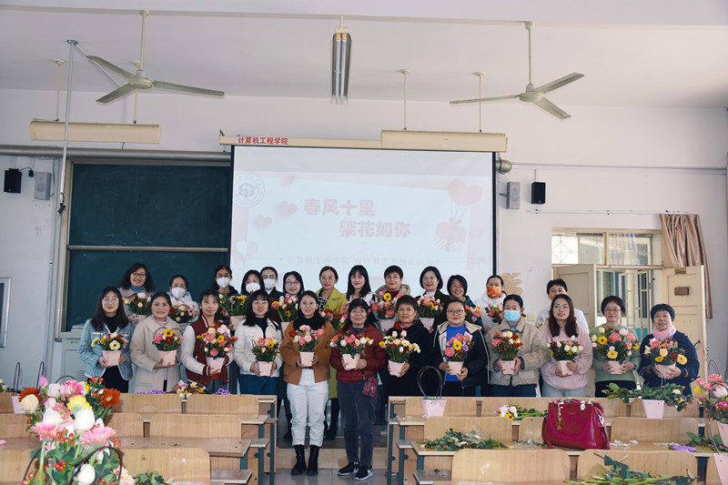 本网讯 春意枝头添新装,鲜花映美人。3月2日下午,计算机工程学院全体女教工在天一楼7234教室开展了“春风十里,繁花如你”三八妇女节主题插花活动。
