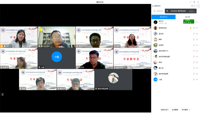 本网讯 为做好2023年国家社科基金项目、教育部人文社科基金项目申报工作,切实提高申报质量,3月3日、3月4日,文史学院(文化与旅游学院)通过线上腾讯会议方式,举办了两场国家社科基金项目申报专家指导交流会。会议特别邀请了山东大学“文史哲”编辑部二级教授、博士生导师刘培教授到会指导。会议由该院副院长赵红卫主持,拟申报国家社科基金项目、教育部人文社科基金项目的教师及其他相关教师参会。