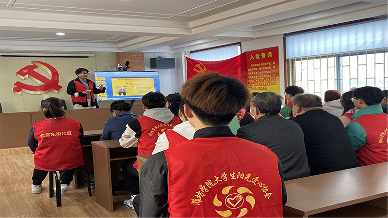 本网讯 “学习雷锋好榜样,忠于革命忠于党……”今年3月5日是第60个学雷锋纪念日、第24个“中国青年志愿者服务日,计算机工程学院组织青年志愿者联合潍坊新闻广播《银龄之声》节目组、北海路街道社工站、北宫东街社工室、北宫东街新时代文明实践站,为奎文区北海路街道北宫东街社区的老年人开展了一场贴心的智慧助老专题讲座,并进行了一对一的志愿服务。