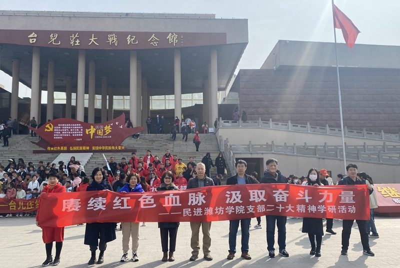 本网讯 为深入学习宣传贯彻中共二十大精神,推动主题教育学习走深走实,3月4-5日,民进潍坊学院支部组织会员赴枣庄进行“赓续红色血脉,汲取奋斗力量”主题活动。