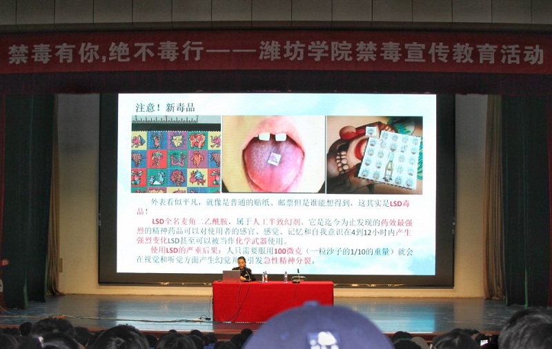 潍坊市高新区公安分局禁毒大队警官给大家做了禁毒宣传教育专题讲座,分别从“毒品介绍”“什么是吸毒”“毒品的危害”和“毒品预防”四个方面向大家讲解了毒品的相关知识。在一问一答中禁毒知识自然而然地印在了大家的脑海里。