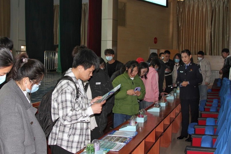 活动最后,同学们依次到台前参观了毒品模型。通过近距离的观察,提高了对毒品的辨别能力。对同学们的疑惑,警官在现场进行了细致的解答。
