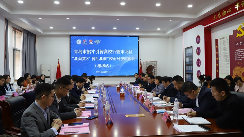 活动中,同时开展了“北尚英才 智汇北聚”校企对接座谈会。会议邀请了潍坊医学院等6所驻潍高校代表和青岛市13家人力资源机构和企业参加。座谈会上,徐梅致辞,对青岛市人社局一行表示热烈欢迎和衷心感谢,并介绍了学校高水平应用型大学建设和毕业生就业创业情况。6所驻潍高校代表依次对本校基本情况和就业工作开展情况进行了简单介绍。青岛市及市北区人社局领导重点对市、区相关人才引育优势政策进行了推介。13位企业负责人分别介绍了公司情况和人才需求。各参会单位围绕学生就业意向和趋势、大学生实习、建立长效招聘机制、联合开展系列人才活动等方面进行了深入交流和探讨,并成立了潍坊高校招才引智联盟群。刘传华和王萍为6所驻潍高校颁发了市北区“招才引智工作站”牌匾,徐梅为市北区4家重点企业颁发了“就业实习基地”牌匾。座谈会由青岛市市北区人社局和潍坊学院学生工作处联合承办,学校党委委员、宣传部部长单振涛主持,学生工作处、团委、物理与电子信息学院负责人参加。