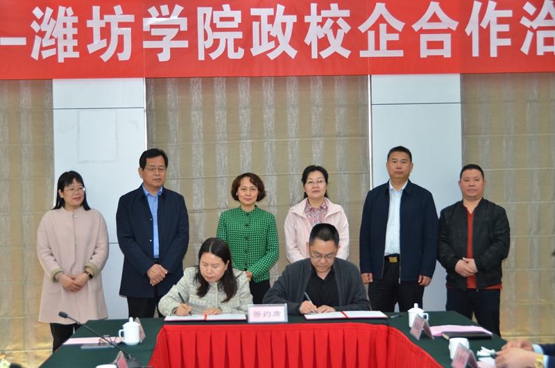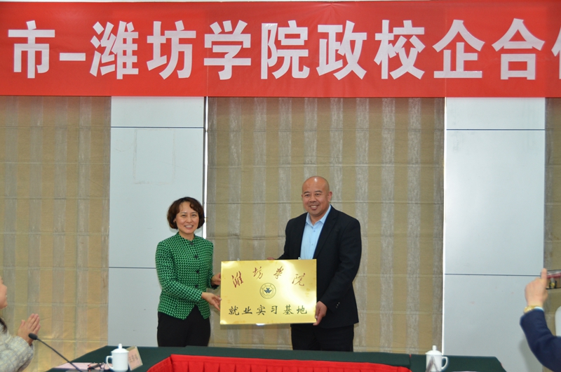 经济管理学院负责同志代表学校与寿光7家企业签订了就业实习基地建设及相关教科研合作协议。徐梅为签订协议的企业授牌。