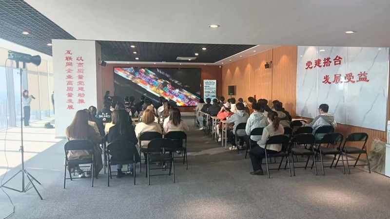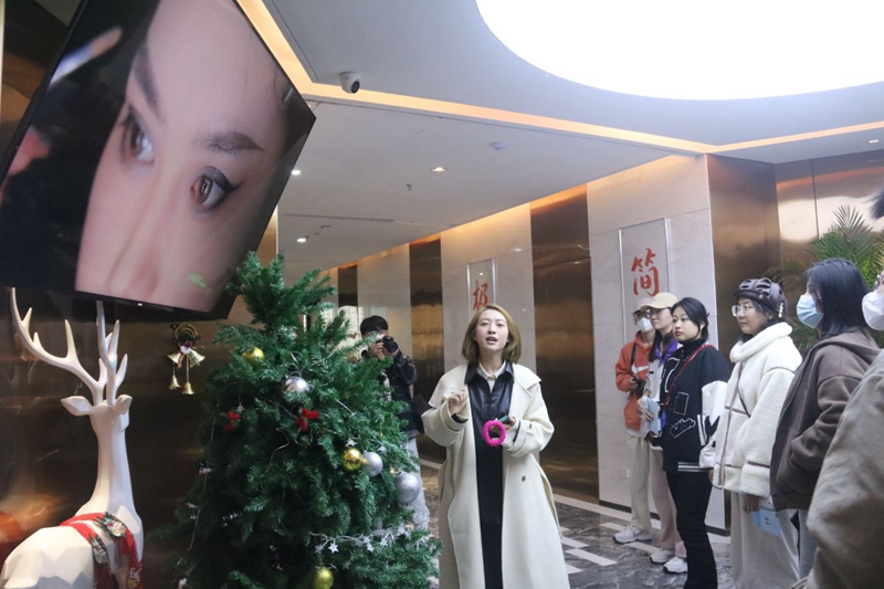 活动中,大家参观了青岛市e路红帆党群服务生态圈,市北区人社局向学生讲解了住房补贴、安家费和“北尚英才”相关人才政策,现场发放了就业大礼包,包括企业岗位需求、市北区人才政策书签等。青岛中央商务区管委会负责人重点推介了中央商务区和卓越新媒体产业园。该商务区集聚MCN、广告传媒、电商等各类新媒体企业300余家,孵化百余千万+短视频大号、图文公众号,成为中国新媒体产业发展的高地和城市天际线上的“流量担当”。古麦嘉禾、旗鱼等4家企业依次向学生介绍了企业现状、福利待遇、人才需求等情况。随后,大家到古麦嘉禾、旗鱼科技、万物可爱文化传媒、伟大前程文化传媒4家企业进行现场观摩和沉浸式体验,参观了新媒体企业的办公环境,对新媒体行业有了更深刻的认识。