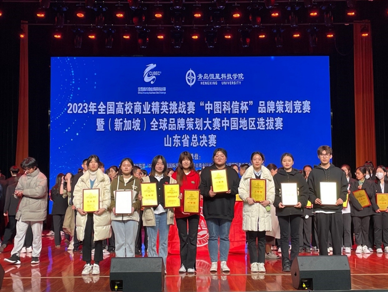 本网讯 4月9日,2023年全国高校商业精英挑战赛-品牌策划竞赛山东总决赛在青岛恒星科技学院落下帷幕。在高手云集的决赛现场,我校经济管理学院选派的8支队伍取得一等奖2项、二等奖3项、三等奖3项的优异成绩,充分展现了我校学生的理论水平和专业能力。