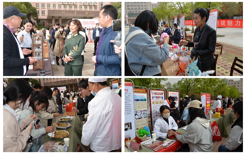 仪式结束后,风筝、核雕、嵌银、刺绣、老猫花灯、葫芦烙画、恒盛斋点心、富郭庄芥末鸡等20余个非遗项目参与互动展演;潍坊中医药非遗传承中心的传统医药类传承人进行现场义诊;螳螂拳、舞狮、汉服走秀等节目进行了现场表演;部分非遗文创企业及文创产品进行了宣传推介;奎文区人社局、奎文团区委向师生现场介绍了奎文青年人才计划、奎文就业政策等。与会领导和嘉宾还参观了我校非遗研学基地。