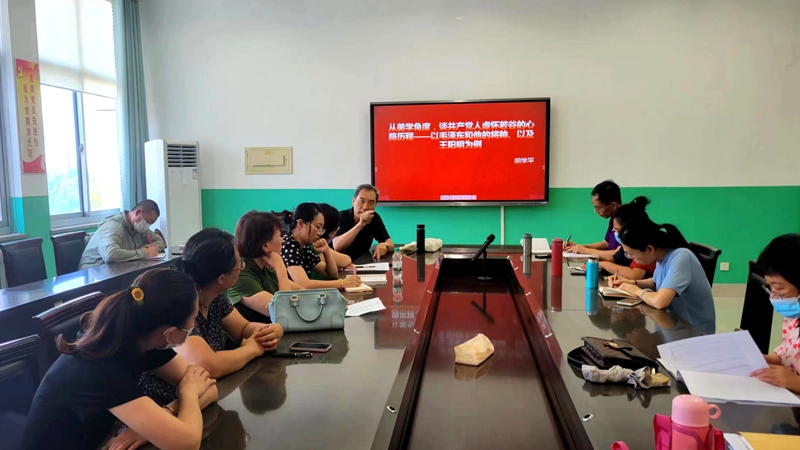 本网讯 为推动学习贯彻习近平新时代中国特色社会主义思想主题教育走深走实,7月7日上午,外国语学院教师二支部举办基于美学的党建工作专题报告会。胡学平同志以《从美学角度谈共产党人虚怀若谷的心路历程》为题,阐述了中共党史中的美学思想,开辟了支部活动新视角。