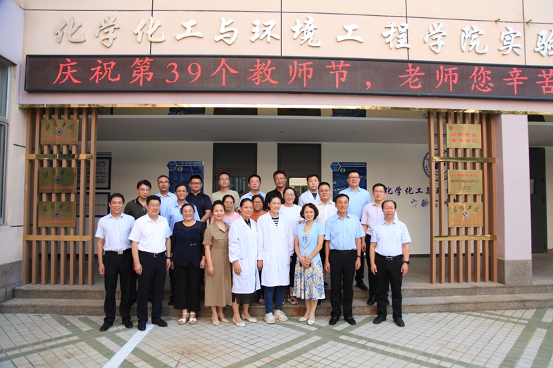 9月8日,校党委书记徐梅,党委副书记、校长来逢波,党委副书记王守全,党委委员、副校长李英德到化学化工与环境工程学院实验实训中心进行检查指导,参观了水生态安全与环境工程实验室、二氧化碳捕获与催化转化研究创新实验室,并与实验室相关教师进行了座谈交流。徐梅向教师们送上了节日的祝福,对化学化工与环境工程学院近年来在实验室建设以及产教融合方面取得的成绩给予充分肯定,鼓励学院在校企合作、服务社会方面继续发挥专业优势,再创佳绩。教师们表示,将不辜负学校领导的关怀和期望,牢记立德树人根本任务,勇担育人职责使命,在工作中更好地发挥才干,回馈学校、回馈学生、回馈社会,努力做有理想信念、有道德情操、有扎实学识、有仁爱之心的“四有”好老师。