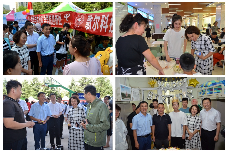在弘德社区,徐梅、来逢波、任立春一行先后来到各学院迎新报到服务点和餐厅,详细了解新生报到及餐厅运营等情况,并与新生亲切交谈,勉励同学们尽快完成角色转换,适应大学生活,努力学习,成就更好的自己。迎新当天,计算机工程学院和外国语学院各有一名新生赶上生日,学院为他们精心准备了蛋糕等生日礼物,校领导也来到现场送上祝福,令他们度过了一个难忘的生日。