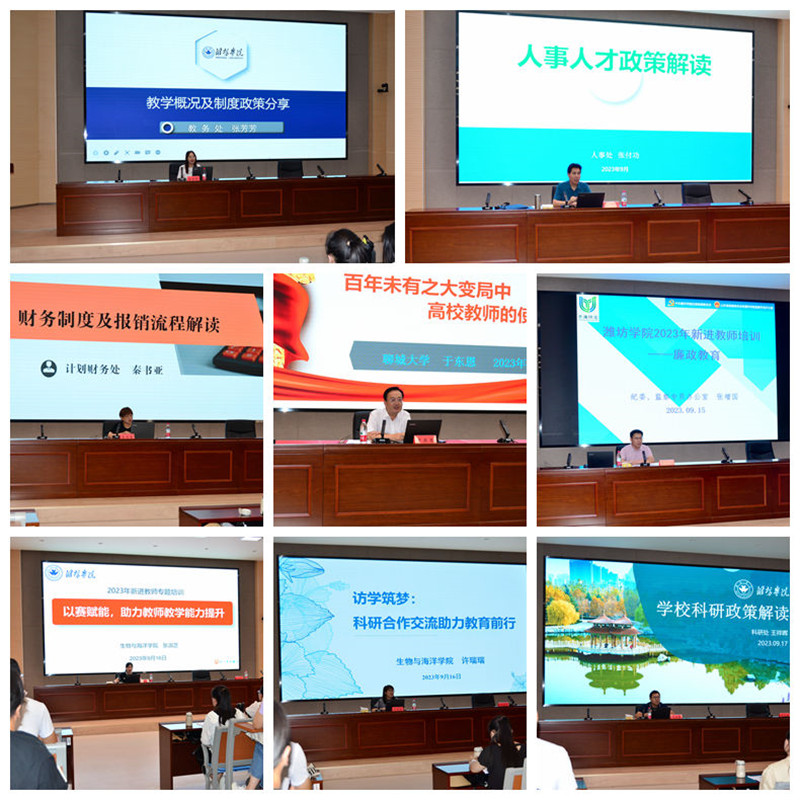 9月15日上午,培训班举行开班式,副校长苗金春作开班动员讲话。苗金春对新进教师加入潍坊学院,并成为一名高等教育工作者,表示欢迎和祝贺。他要求新进教师,要涵养高尚师德,切实承担起教育者的社会责任和历史使命;要精进治学本领,全面提高我校人才培养水平;要善于规划成长,牢固树立终身学习和持续发展理念;要甘于担当奉献,不断书写立德树人的崭新篇章。