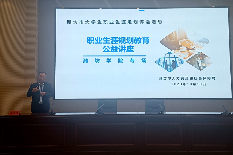 本网讯 为帮助在校大学生了解职业生涯规划的重要性,树立科学的职业生涯规划观念,10月19日,由潍坊市人力资源和社会保障局主办,市公共就业和人才服务中心承办、潍坊创业大学具体实施的大学生职业生涯规划教育公益讲座潍坊学院专场活动圆满举行。活动以“主会场+分会场直播”的方式开展,6000余名在校生参加。