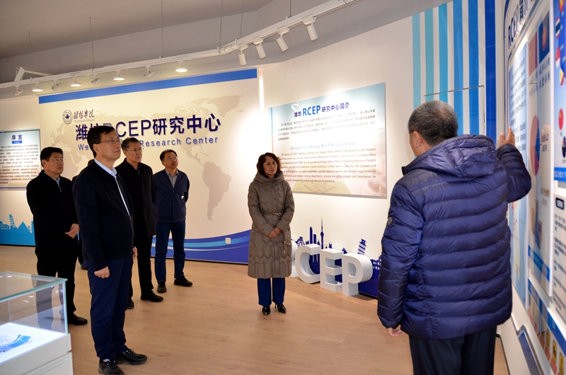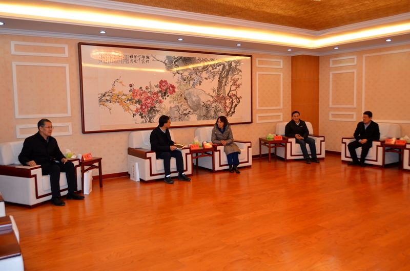 本网讯 11月13日,潍坊科技学院院长魏华中、党委书记赵光强一行来校交流,校党委书记徐梅,党委副书记、校长来逢波,党委副书记王守全会见了客人。