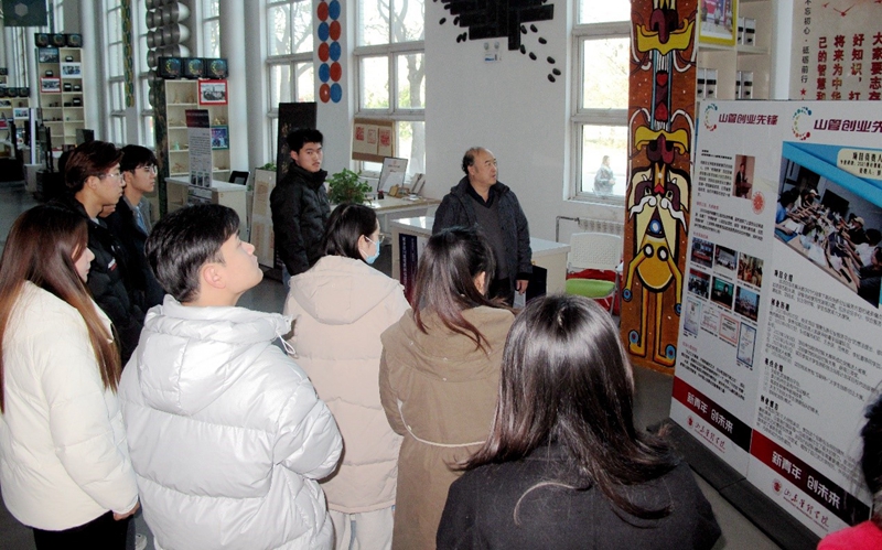 山东管理学院创新创业学院季老师带领大家参观优秀创业项目工作室,并详细介绍了创新创业中心整体运营情况,包括入驻项目遴选、孵化形式及落地转化成果等,分享了创新创业成果转化方面的经验和成效。