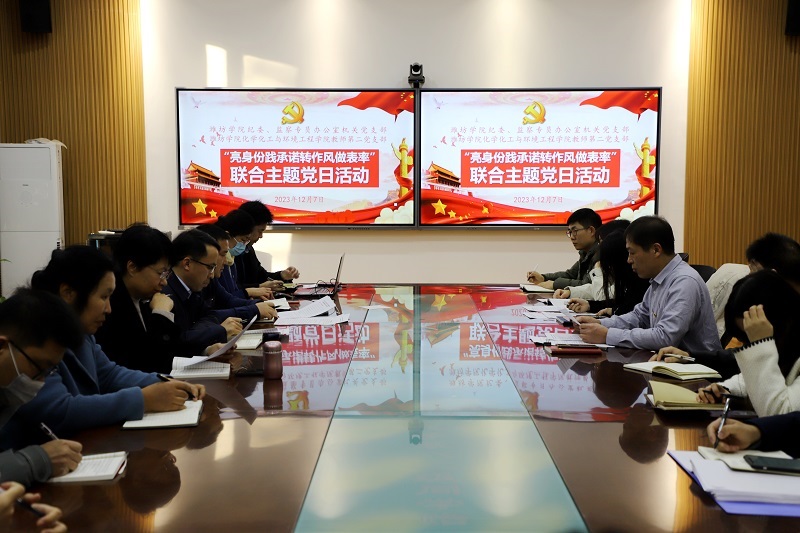 本网讯 12月7日,纪委、监察专员办公室机关党支部与化学化工与环境工程学院教师第二党支部开展了“亮身份践承诺转作风做表率”联合主题党日活动。学校党委委员、副校长赵卫红,学校党委委员、纪委书记、监察专员武玉杰分别以所在支部党员身份参加活动。活动由化学化工与环境工程学院党总支负责人主持。化学化工与环境工程学院党总支委员、两个支部全体党员参加活动。