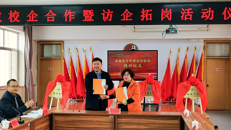 仪式上,学校与鄌郚镇党委签订了高层次人才发展战略合作框架协议,与山东伟圣现代农业有限公司签订了350万横向课题合作协议,并签署校企合作共建实践教学基地、专业硕士研究生联合培养、博士科研工作研究基地共建协议。赵卫红与鄌郚镇党委副书记、镇长吕东方一起为潍坊学院教学实践基地、专业硕士研究生联合培养基地、博士科研工作研究基地揭牌。