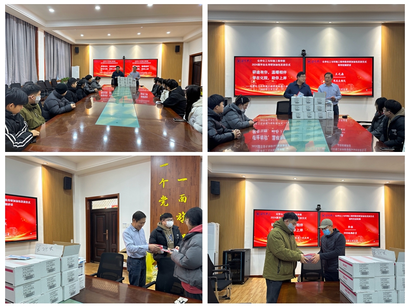 本网讯 为鼓舞学生考研士气,坚定考研信念,缓解备考压力,12月22日,化学化工与环境工程学院党总支书记王元森、院长助理高祥及2020级辅导员李强在8213会议室,为学生发放了“考研加油包”并谆谆嘱托,鼓励同学们保持良好心态,劳逸结合,全力以赴备考,取得让自己满意的成绩。