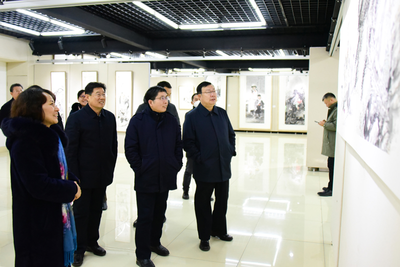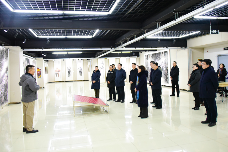 本网讯 12月22日,校党委理论学习中心组在学校美术馆开展沉浸式现场教学,参观“铸史图真——王珂现实主义水墨作品展”。校党委书记徐梅,党委副书记王守全,党委委员王成端、苗金春、任立春、武玉杰、张晓静参加活动。