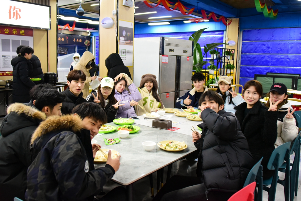 “家是哪里的,春节是怎样安排的?”学校领导见到同学们便亲切地询问、了解同学们的寒假生活安排和留校计划。同学们热情地向老师介绍自己的基本情况和家乡特色。师生们围坐在一起,一边包饺子一边话家常,互相送上新春祝福,欢声笑语此起彼伏,回荡整个餐厅。