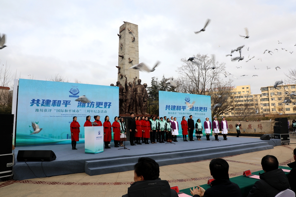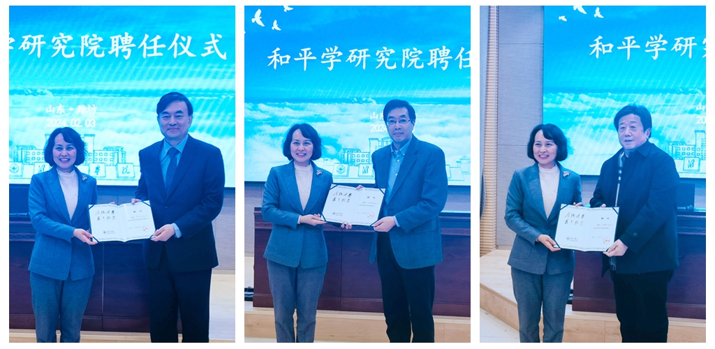 本网讯 2月3日上午,潍坊市举办获评“国际和平城市”三周年纪念活动,校党委书记徐梅应邀出席,活动现场举行了和平学研究院揭牌仪式。