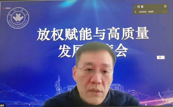 苗金春总结了放权赋能工作的初步实施情况,对各部门前期工作进展给予充分肯定,他指出,放权赋能改革是促进学校高质量发展的重要举措,是一项长期性、系统性、全面性的工作,各部门要突出重点、形成合力、加快进程,为放权赋能提供机制保障。