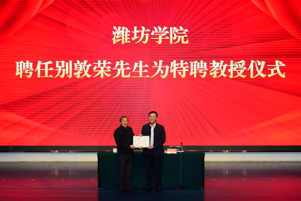 本网讯 2月26日上午,学校在图书馆报告厅举行仪式,聘请厦门大学教育研究院院长、博士生导师别敦荣教授为我校特聘教授,学校党委副书记、校长来逢波为别敦荣教授颁发聘书。仪式由党委副书记王守全主持,学校党委班子成员、全体处级干部出席仪式。