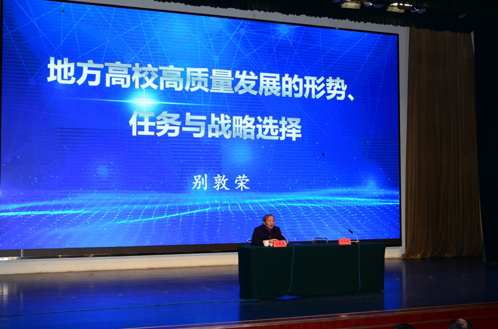 仪式后,别敦荣教授为学校党委班子成员、全体处级干部作了“地方高校高质量发展的形势、任务与战略选择”专题报告。