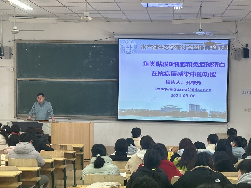本次报告主题为《鱼类粘膜 B细胞和免疫球蛋白在抗病原感染中的功能》。孔维光老师围绕主题重点介绍了鱼类粘膜免疫球蛋白的种类和结构,揭示其在对抗感染过程中的功能和免疫应答机制,阐明了鱼类免疫球蛋白和B细胞在病原感染中的产生与增值规律,揭示了免疫球蛋白在维持粘膜表面微生物稳态中的重要作用。