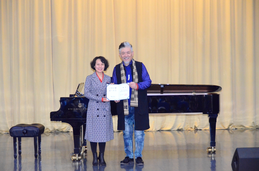 本网讯 3月13日,著名男中音歌唱家雷岩教授受邀来校作题为“人生如歌”的声乐学术讲座。校党委书记徐梅出席活动并为雷岩教授颁发音乐与舞蹈学院名誉院长聘书。党委委员、副校长任立春出席活动。音乐与舞蹈学院师生参加活动。