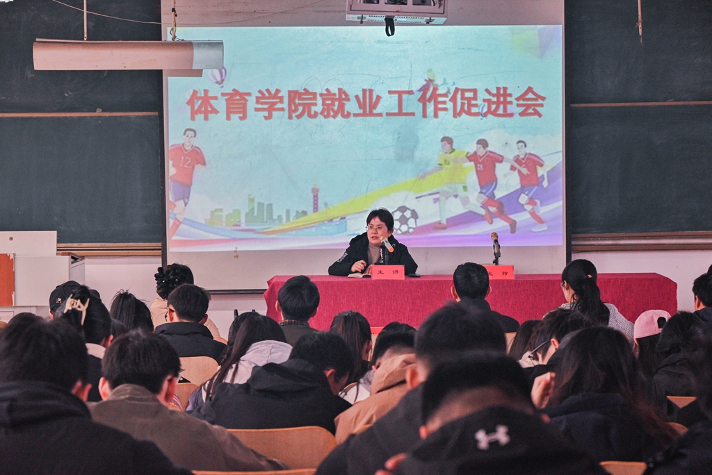 本网讯 为落实学校毕业生就业工作要求,扎实推进毕业生高质量充分就业,3月18日,体育学院举行2024届毕业生就业工作促进会。会议由体育学院党委书记孙创业主持,学生工作处(武装部)副处长葛红丽、体育学院党委副书记魏星、学生工作处(武装部)国防教育中心副主任孙婷婷、团委创新实践部副部长张亚萍、学生工作处(武装部)就业服务中心李玉强以及体育学院全体辅导员参加活动。
