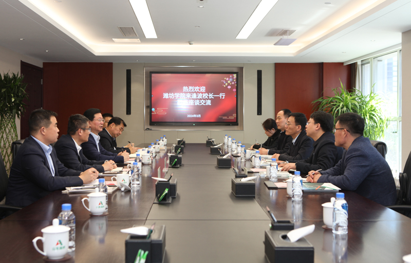 在山东高速路桥集团股份有限公司,党委书记、董事长周新波介绍了公司发展历程、业务范围及近年来在工程建设、人才培养等方面取得的主要成果,表示期待双方建立更紧密的合作关系。来逢波介绍了潍坊学院的办学情况、人才培养和学科建设方向,表示希望与山东路桥加强合作,实现校企双方良性互动,推动企业发展和学校人才培养质量双提升。