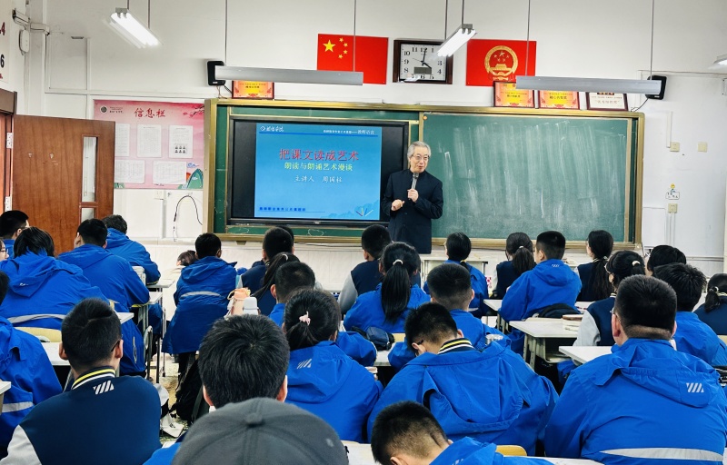 本网讯 3月21日下午,学校关工委委员、退休教授周国柱走进潍坊广文中学以《把课文读成艺术》为题,为初中一年级60余名学生上了两节生动精彩的社团活动课。