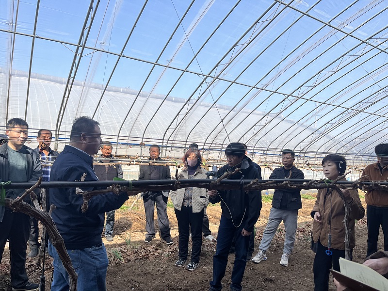 本网讯 3月20日,生物与海洋学院农业精准栽培及数字化种植技术团队联合山东省农科院葡萄研究院、山东农科频道和安丘市农业局,在安丘青云田园农业综合开发有限公司葡萄种植基地开展生产培训会。培训采用线上直播和线下实操结合的方式,来自潍坊各县市区的农技推广中心工作人员、葡萄管理人员和种植户共计50余人参加培训,线上直播观众200余人。