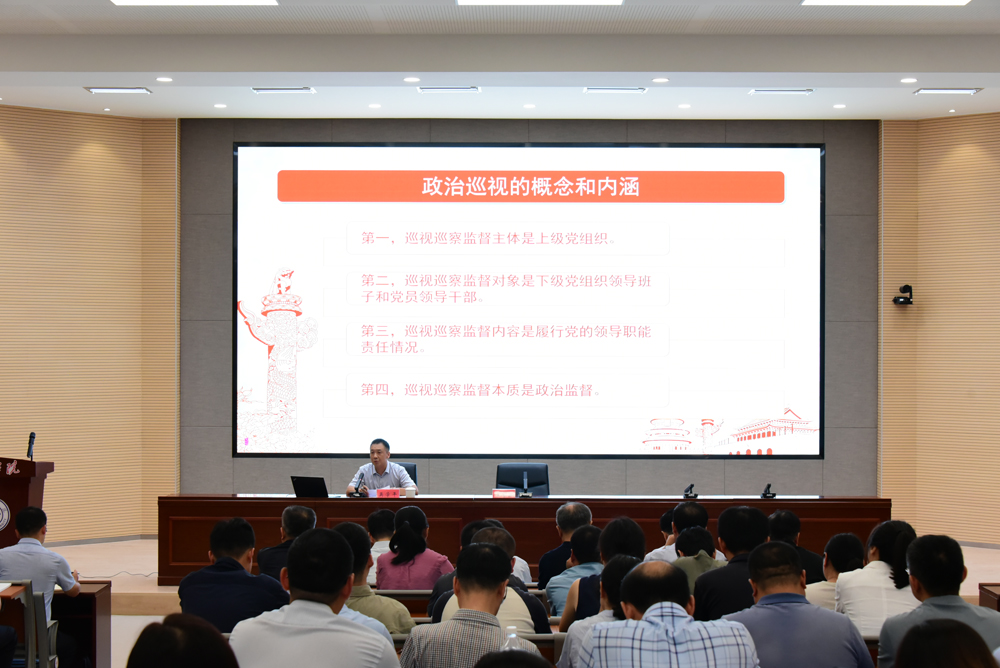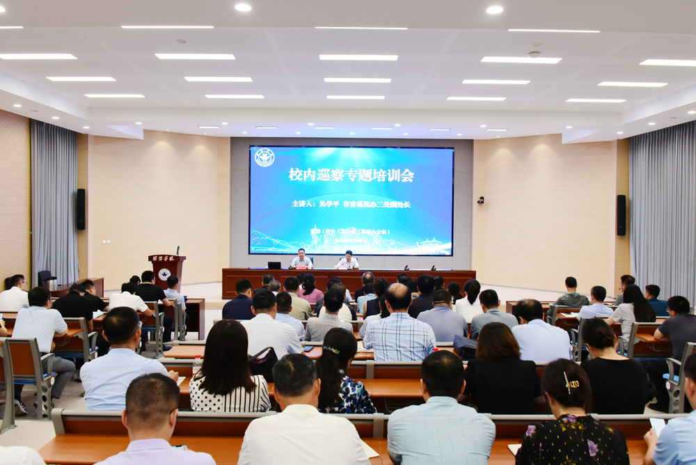 本网讯 9月20日,我校召开校内巡察工作专题培训会,邀请省委巡视办二处副处长吴学平作专题辅导报告。党委副书记王守全主持会议,党委委员、纪委书记、监察专员武玉杰,巡察工作领导小组其他成员出席会议。