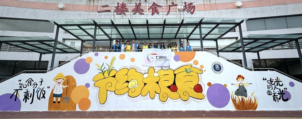 本网讯 近日,美术学院组织“七色花”大学生志愿者服务队在学校第二餐厅举办“节约粮食,从我做起”主题墙绘活动。