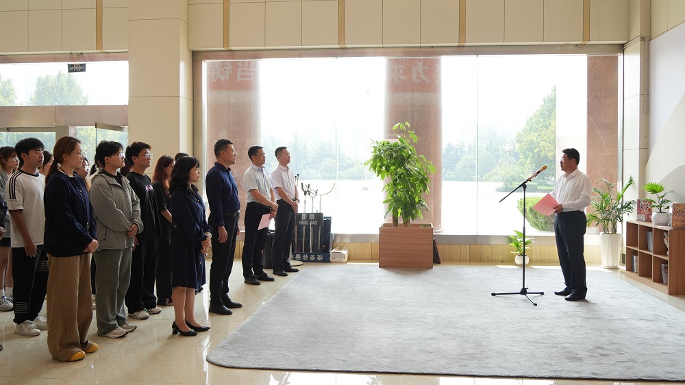 本网讯 9月29日,我校美术学院青年教师靳其涛老师的原创油画作品《沂山盛景图》揭幕仪式在行政办公楼一楼大厅举行。学校党委副书记王守全出席揭幕仪式。仪式由学校党委委员、组织部部长赵加强主持。