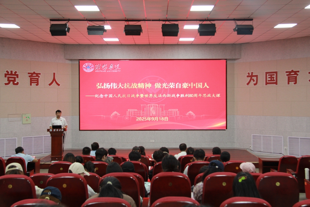 本网讯 9月18日,全国大中小学生同上一堂“弘扬伟大抗战精神 做光荣自豪中国人——纪念中国人民抗日战争暨世界反法西斯战争胜利80周年”思政大课大学篇“大国担当”播出。学校党委宣传部、教务处、团委、马克思主义学院联合,采取多种方式,组织师生观看学习。