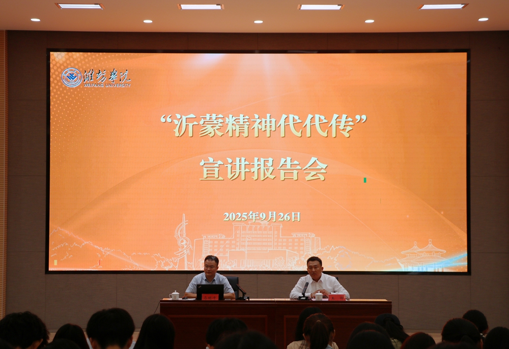 本网讯 为深入学习贯彻习近平总书记关于大力弘扬沂蒙精神、推动红色基因代代相传的重要指示要求,持续做好“沂蒙精神”宣传教育工作,9月26日,学校“沂蒙精神代代传”宣讲报告会在知新楼报告厅举行。报告会由马克思主义学院党委书记王锋主持。