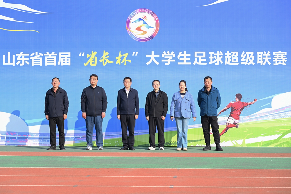 本网讯 11月11日,2025年山东省“省长杯”大学生足球超级联赛男子乙组比赛在学校田径场举行。学校党委委员、副校长任立春出席活动。