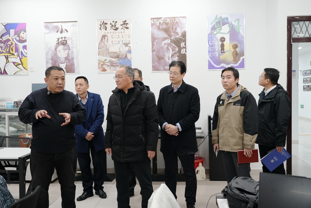 孙科顺一行还实地参观了学校数字创意与融媒体协同创新平台,观看了优秀动画作品展映,现场观摩了融媒体技术应用、数字内容制作等方面的教学与实践成果,深入了解了学校在视听内容创作、动画制作教学方面的特色成果。