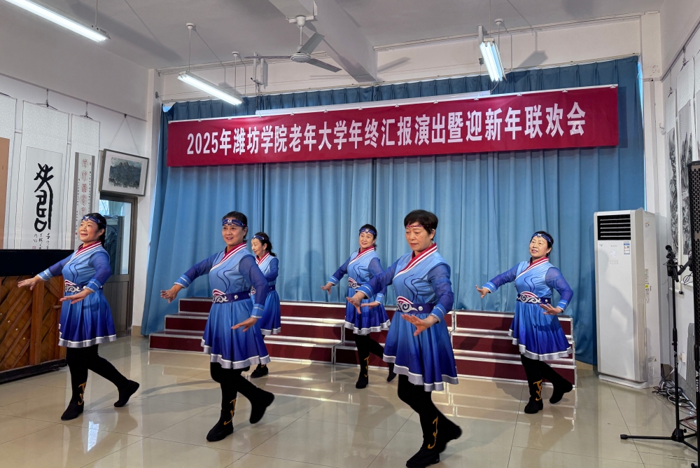 本网讯 12月25日,2025年潍坊学院老年大学年终汇报演出暨迎新年联欢会在学校老干部活动中心举办。学校老领导代表及离退休工作处党委成员、老年大学学员观看了演出。