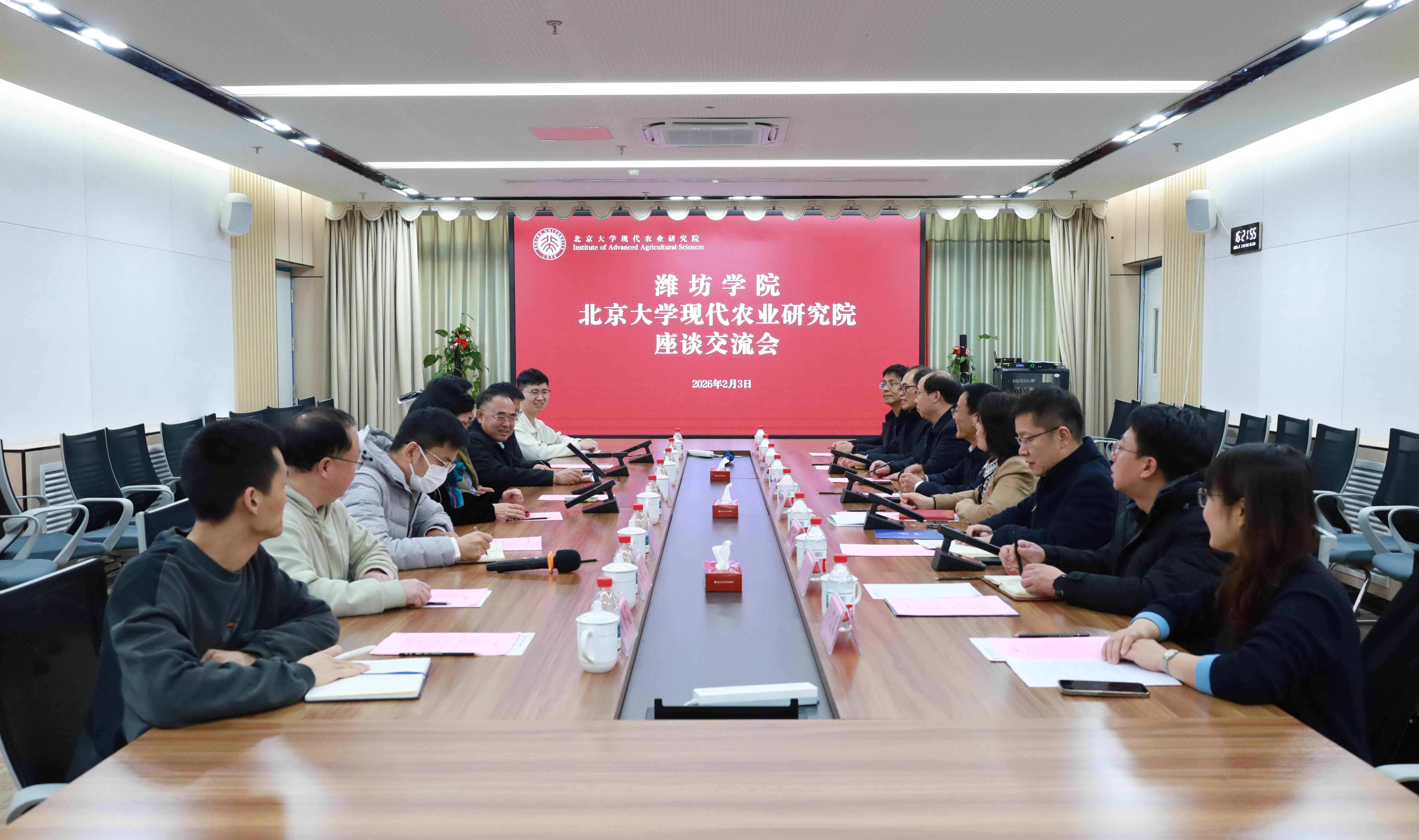 本网讯 为深化校院合作,汇聚优质资源,赋能现代农业与生命科学领域创新发展,2月3日,学校党委书记来逢波,党委副书记、校长王霞,党委委员、副校长李英德带队赴北京大学现代农业研究院开展调研交流活动。北京大学现代农业研究院院长、潍坊现代农业山东省实验室主任邓兴旺,北京大学现代农业研究院管理服务中心主任、潍坊峡山生态经济开发区党工委书记、管委会主任李永光出席活动。